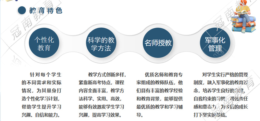 冠南培訓(xùn)學(xué)校由南寧名校教師傾情打造致力為有夢想、有信心、肯學(xué)、愿學(xué)的有志考生提供高品質(zhì)的學(xué)習(xí)空間環(huán)境。運(yùn)用多年的教學(xué)、備考經(jīng)驗(yàn)幫助考子們實(shí)現(xiàn)自己的大學(xué)本科夢。讓后進(jìn)生上本科,讓中等生上重點(diǎn),讓優(yōu)等生考重本,是我們的教學(xué)核心根本。冠南教育匯聚南寧市三中名師為你的高考保駕護(hù)航,精準(zhǔn)備考讓學(xué)生快速提分和大幅度提分不是夢。高考猜題命中率比較高,管理比較嚴(yán)格,目前是南寧市升學(xué)率最好的,藝考生達(dá)到100%升本率,文化生升本率99%,低進(jìn)高出。