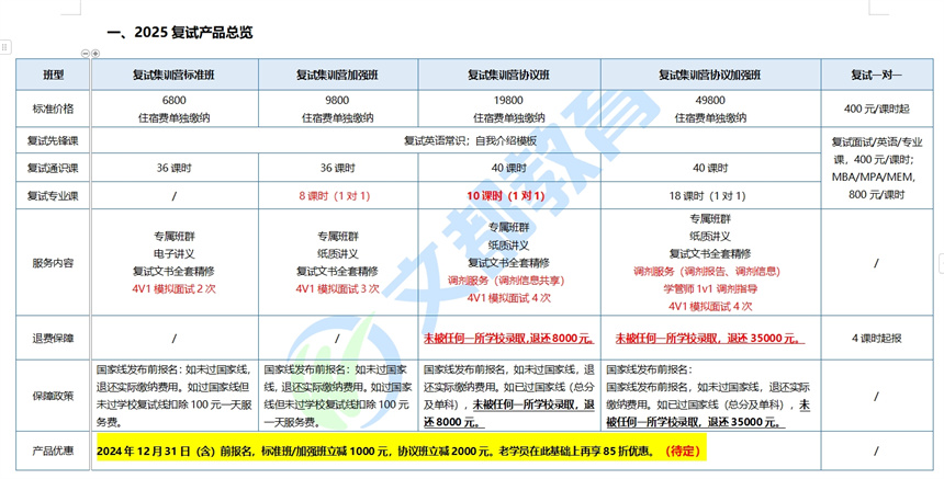 1.班型靈活,標準班、加強班、協(xié)議班型都有:針對分數(shù)線不高的學生,可以選擇報名協(xié)議類班型,報名時簽訂協(xié)議,保障學生利益,低風險參加我們的課程輔導。針對初試分數(shù)有一定優(yōu)勢的同學,也可以選擇性價比較高的標準班和加強班。同時這些班型都有線上和線下兩類,滿足同學們不同場景下的上課需求。