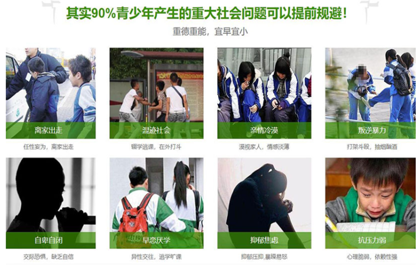 護航主要針對10至18周歲青少年在成長過程中所出現(xiàn)的不良行為習(xí)慣和心理問題例如:性格叛逆離家出走、溝通困難、性格孤僻、自卑自閉、厭學(xué)逃課、愛玩游戲、早戀、等問題進行心理輔導(dǎo)、思想教育、行為矯正、素質(zhì)培養(yǎng)和文化課輔導(dǎo)的成長教育學(xué)校。護航綜合運用心理輔導(dǎo)、行為養(yǎng)成教育、道德和法制教育等多種輔導(dǎo)方式引導(dǎo)孩子,引導(dǎo)孩子從成長過程中的心理思想偏差、行為意識偏差、文化學(xué)習(xí)偏差,中走出來。讓孩子恢復(fù)成長自信,矯正不良行為習(xí)慣,樹立正確的人生觀、世界觀、價值觀、學(xué)習(xí)觀、親情觀!