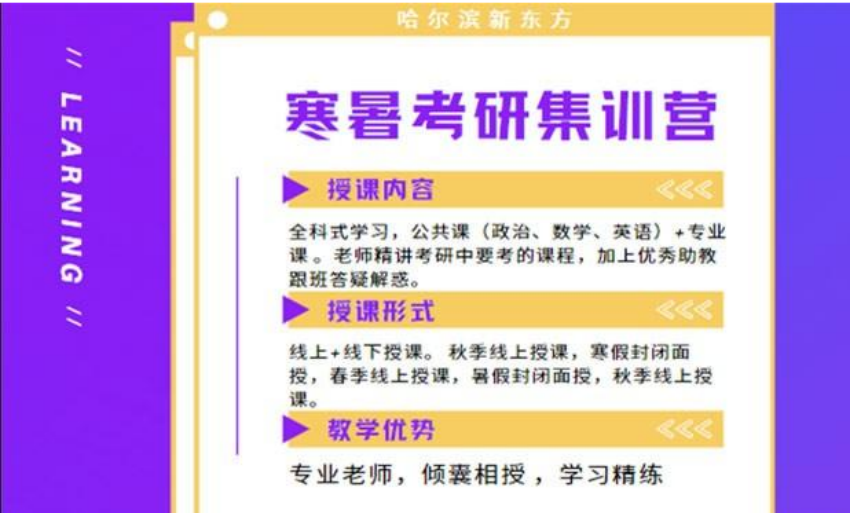 哈爾濱新東方考研是哈市知名考研輔導(dǎo)機(jī)構(gòu),主要從事考研公共課(政治、英語和數(shù)學(xué))和考研專業(yè)課程的備考輔導(dǎo),從初試到復(fù)試,新東方專業(yè)考研輔導(dǎo)老師一站式助力備考,解析考研大綱,設(shè)置備考方案,帶來精品課程。