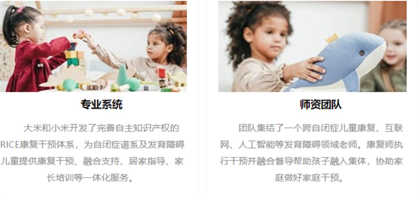 佛山十大兒童語言發(fā)育遲緩訓(xùn)練比較好的康復(fù)機構(gòu)名單一覽;大米和小米由南方都市報前首席記者姜英爽(大米)創(chuàng)辦于2014年9月,最初以微信公眾號“大米和小米”,為中國心智障礙家庭倡導(dǎo)權(quán)利,科普干預(yù)知識。2016年,在深圳開設(shè)第一家線下中心。同時,攜手中山三院鄒小兵教授、美國哥倫比亞大學(xué)博士、博士級行為分析師(BCBA-D)袁巧玲率專業(yè)團隊,結(jié)合康復(fù)數(shù)據(jù)和實踐經(jīng)驗,探索中國本土化康復(fù)實踐,于2019年推出更適合中國自閉癥譜系、言語發(fā)育遲緩等心智障礙兒童的“RICE康復(fù)體系”。